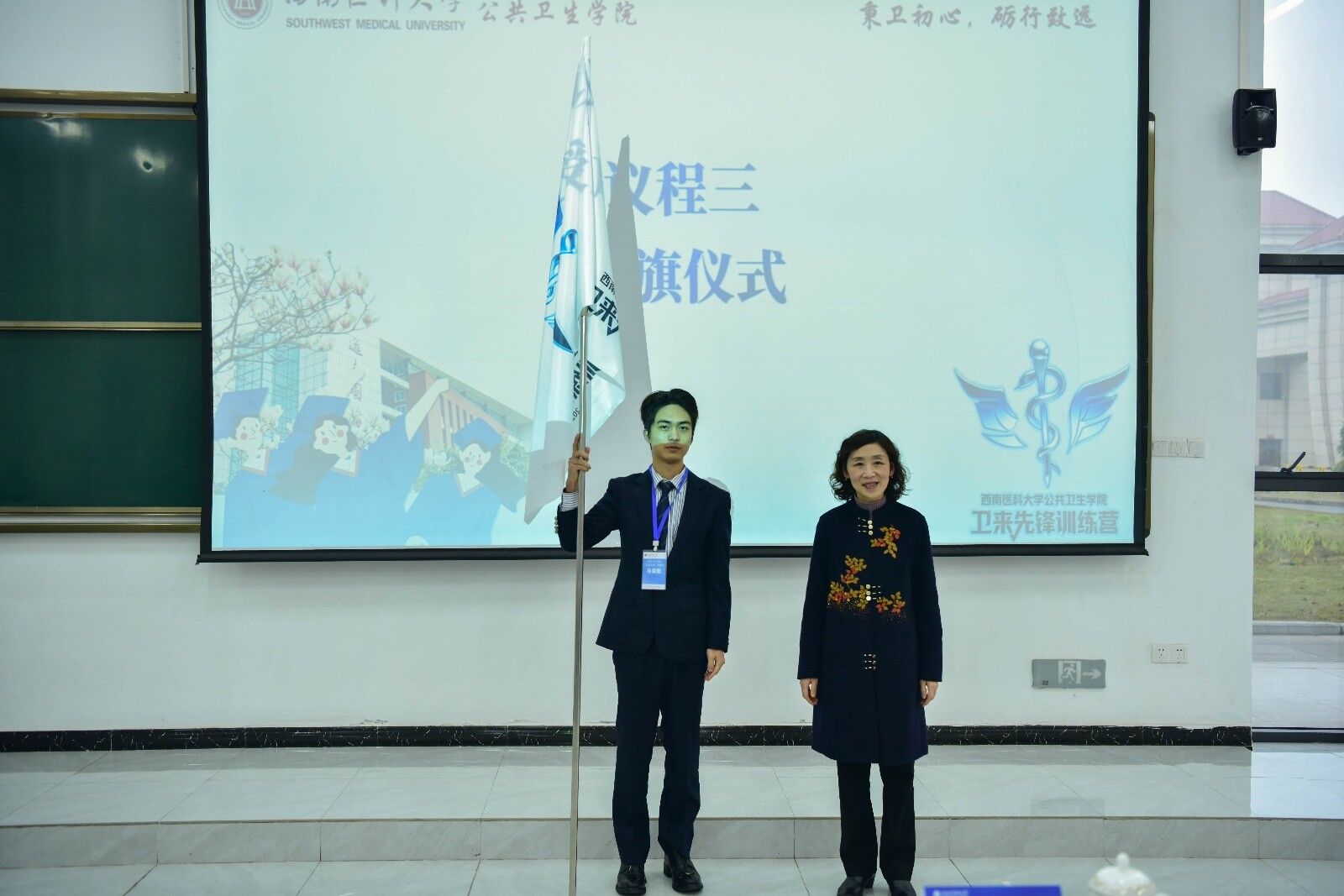 开营仪式由公共卫生学院党委书记马玲主持,议程紧凑而庄重。何涛在致辞中立足“健康中国”战略深入实施、全球公共卫生形势不断变化的时代背景,强调此次训练营是培养具备扎实学识、实践能力与社会担当的拔尖创新人才的重要平台。她向全体营员提出三点殷切希望:始终将国家需要置于心中首要位置,锚定公卫人的时代使命;持续锻造解决复杂问题的硬本领,夯实专业根基;在实践中锤炼担当品格,努力成长为守护人民健康的未来公卫先锋。 随后,2024级食品卫生与营养学专业郭虹芮同学作为营员代表发言。她结合专业学习感悟与时代责任,倡议全体学员将课堂知识与实践应用深度融合,以实际行动践行“卫来先锋”的责任与荣耀。仪式的核心环节中,何涛亲手向营员代表马浚航同学授予训练营营旗,旗帜的传递象征着使命与期望的交接,也正式拉开了为期五天的训练营序幕。