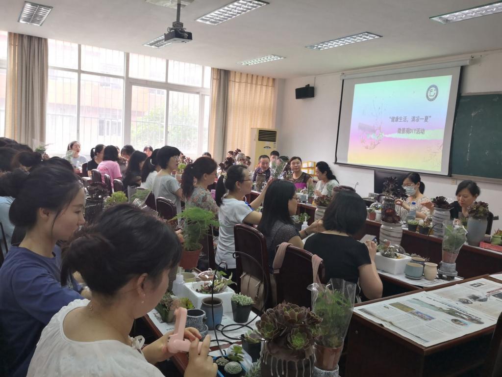 为帮助学院教职工释放日常工作生活所带来的压力,让学院职工在陶冶情操,修身养性的同时学会自我表达、释放压力。7月9日下午,外国语学院•国际教育学院分工会在荟文楼二楼学院会议室举办了“健康生活,清凉一夏”微景观制作活动。