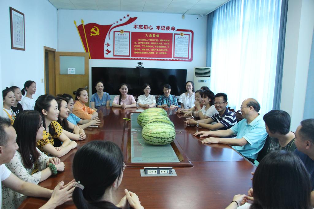 8月6日,在附属口腔医院新一任党委书记代天祥、原党委书记李正新、院长肖金刚、副院长郭玲的带领下,工会副主席张兰英、党政办公室主任古元、组织人事科科长郭世莉及工会办公室相关人员一起,分别到各临床科室和行政职能科室发放了西瓜,为全院职工送去清凉。附属口腔医院院领导对坚守一线的职工表示亲切的慰问,嘱咐大家在疫情和高温期间确保医疗安全和正常的医疗秩序的同时,也要注意降温防暑,保证身体健康。职工们对院领导亲临一线的慰问表示感谢,并表示一定履职尽责,努力工作,保证医院各项工作正常顺利进行。