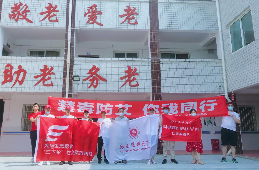8月10日上午,由beat365官方网站、泸州市禁毒办、况场镇卫生院联合举办的“禁毒防艾”活动在江阳区况场镇敬老院开展。活动以“助力禁毒防艾,关爱孤寡老人”为主题,旨在宣传普及禁毒防艾知识,弘扬中华民族尊老爱老传统美德,传递社会正能量。团队指导老师何龙、泸州市禁毒办许霞、况场镇卫生院副院长彭强、况场镇敬老院院长刘洪,团队志愿者,卫生院医务人员及80余名老人参与了活动。