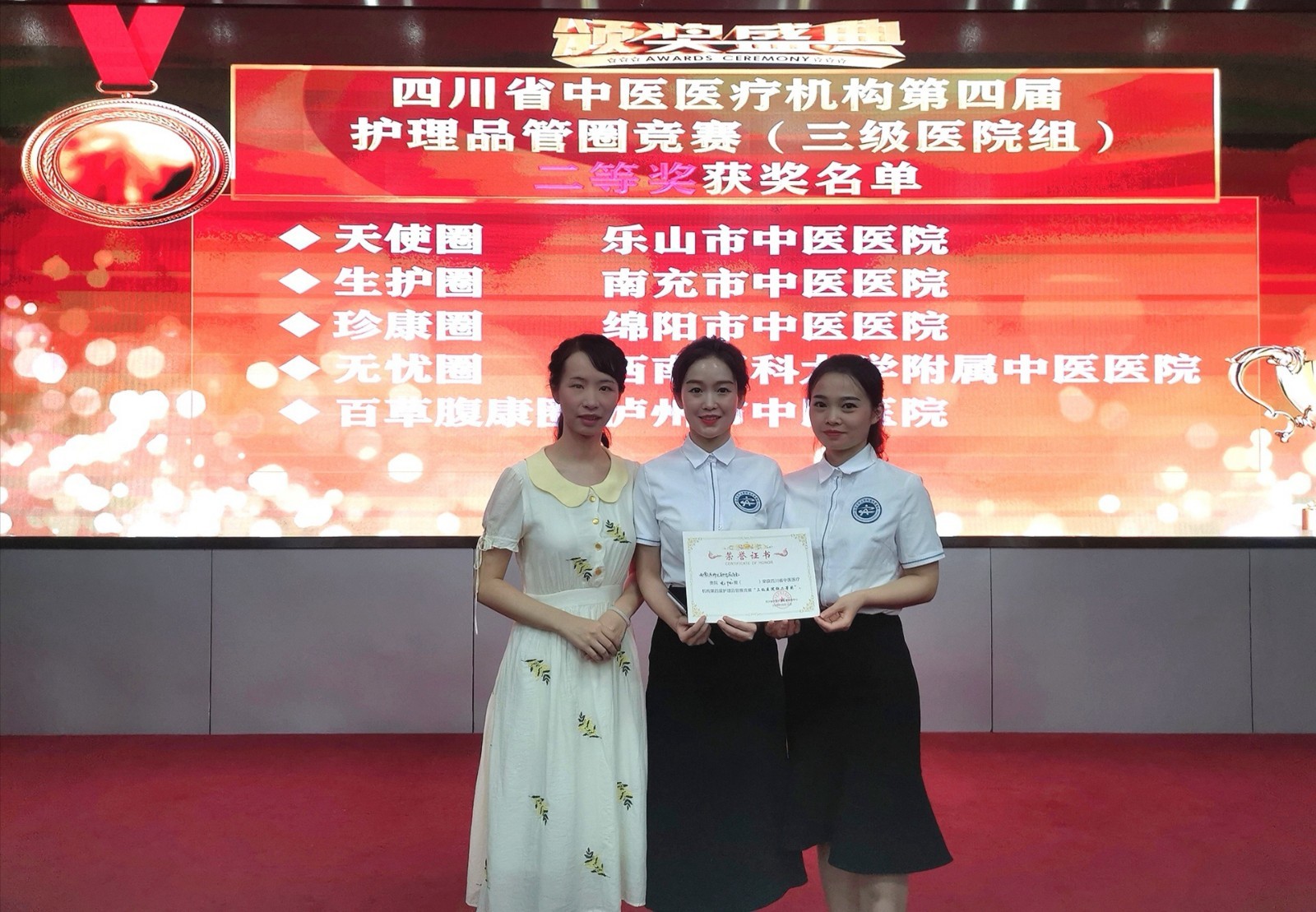 8月15日,四川省中医医疗机构第四届护理品管圈竞赛在成都举行,beat365官方网站附属中医医院护理部推选的“<降低中风恢复期患者主要照护者的焦虑发生率>——无忧圈”在26家医疗单位中脱颖而出,荣获三级医院组二等奖。
