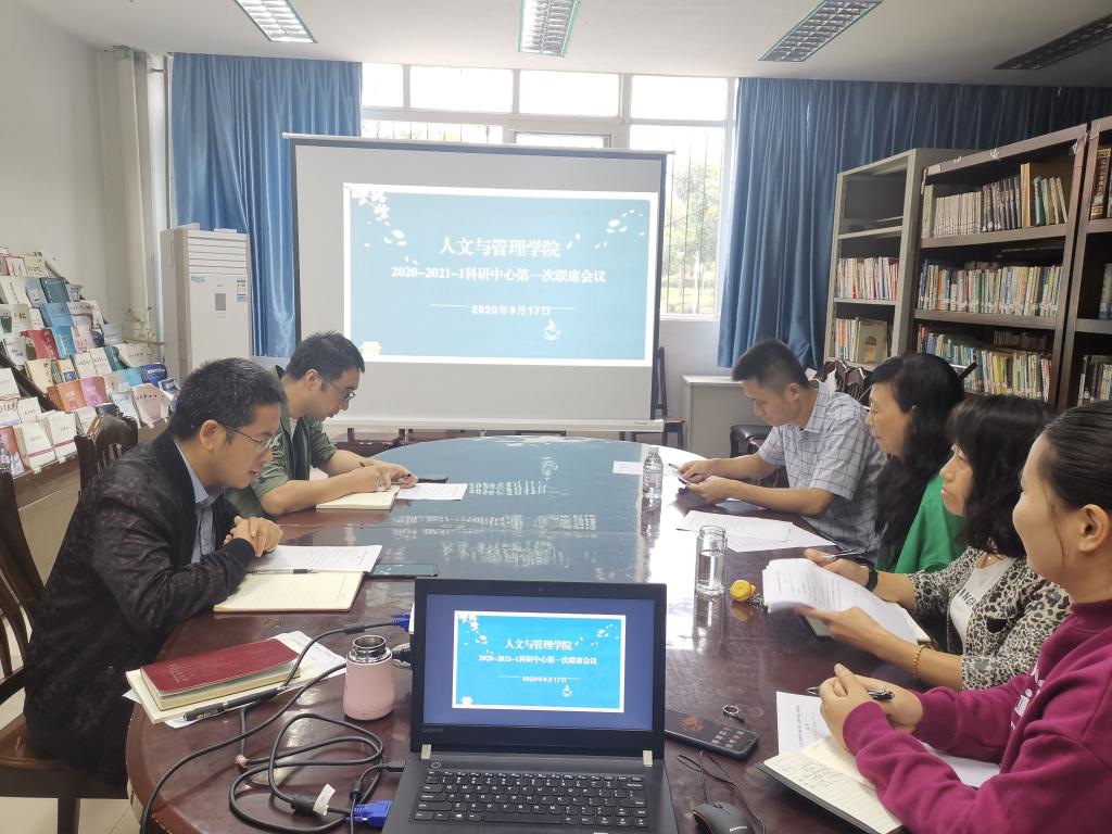 9月17日下午,人文与管理学院在荟文楼一楼图书资料室召开本学期科研中心第一次联席会,人文与管理学院党总支书记陈屹,副院长谷满意,各科研中心及教务科负责人参加会议。会议由谷满意主持。