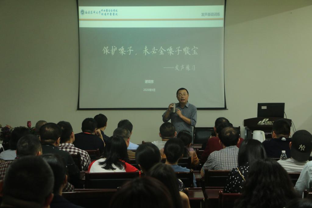 9月24日下午,基础医学院在鸿文楼一楼会议室开展了推广普通话宣传周系列活动,邀请谢晓东老师为教职工做了“保护嗓子——发声练习”的专题讲座,基础医学院80余名教师聆听了讲座,讲座由基础医学院党委书记阳静主持。