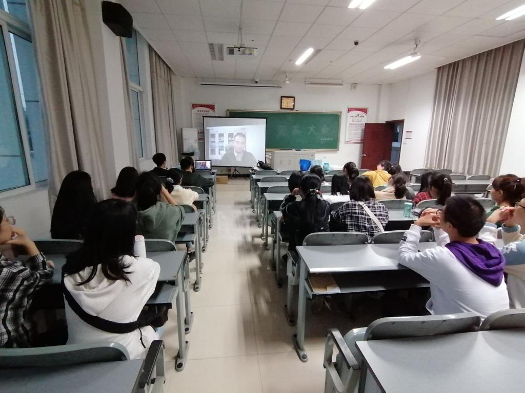 肖建磊对学生进行安全教育,提高防传销、防诈骗的意识,保障自身的生命财产安全,同时对家庭经济困难学生认定工作做培训。