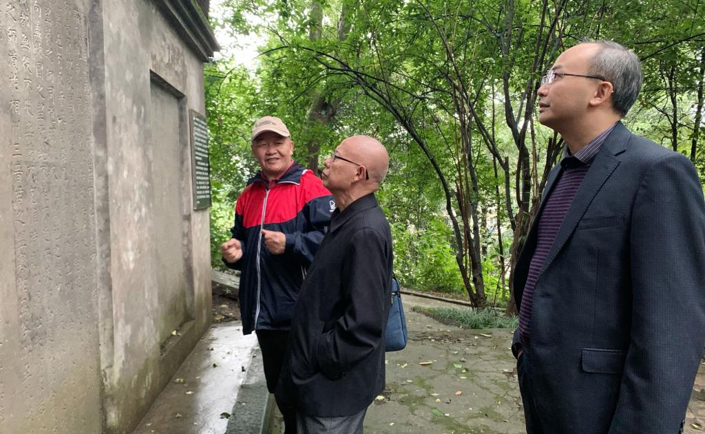 余德泉教授参观了两校区校园,并表示学校历史悠久、底蕴深厚,拥有忠山牌坊、奎星阁、江山平远堂等一大批文化地标,具有非常浓厚的文化氛围。余德泉教授还对校园内的楹联、石碑等进行了现场考究。