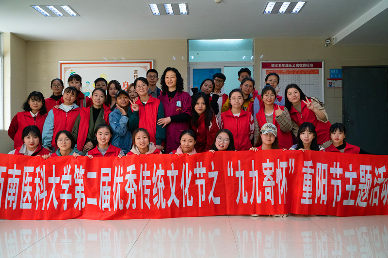 此次活动在江阳区茜草敬老院开展,活动主要包括文艺表演、医学小常识科普以及陪伴老人聊天等内容。文艺表演的过程中,同学们倾情演出:传统与现代结合的乐器演奏《我和我的祖国》、柔美典雅的民族舞串烧、轻松愉悦的戏曲、温暖有爱的手语操以及激情昂扬的红歌合唱。老人们随着欢乐伴奏拍手,沉醉在志愿者的表演中。医学小常识科普环节,教老人做手部操,老人们纷纷伸出双手边做边学,其乐融融。在欢声笑语中,本次志愿服务活动圆满结束,老人们对志愿者们表达了强烈的不舍与感激,活动得到院方的高度好评。