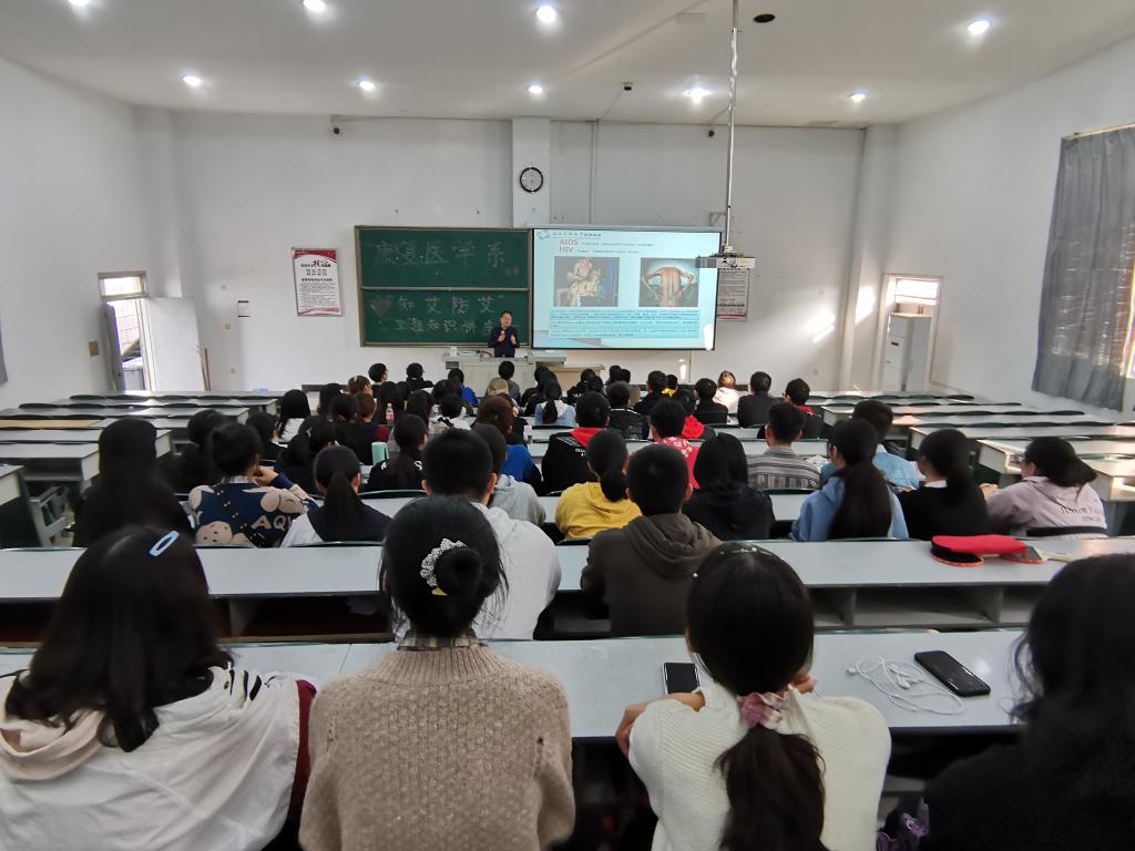 为贯彻落实四川省教育厅《关于全面加强学校艾滋病防治工作的通知》等文件精神要求,增强康复医学系2020级新生艾滋病防范意识,提升学生自我防护能力,营造学生积极参与艾滋病防治工作良好氛围,康复医学系于10月29日下午在荟文楼301举办了“知艾防艾”大学生艾滋病防治知识宣传活动,附属医院传染科主任医师、学校艾滋病防控专家组成员邓存良应邀担任主讲。康复医学系学生科科长黄静主持活动。2020级康复治疗学专业60名学生参加活动。