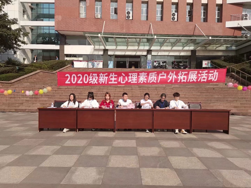 11月14日下午,中西医结合学院于逸夫图书馆前时代广场举行“奋斗青春,共赴繁华”2020级新生心理素质户外拓展活动,2017级辅导员邱实、2020级辅导员周霞、院系主席团、全体2020级新生参与本次活动。