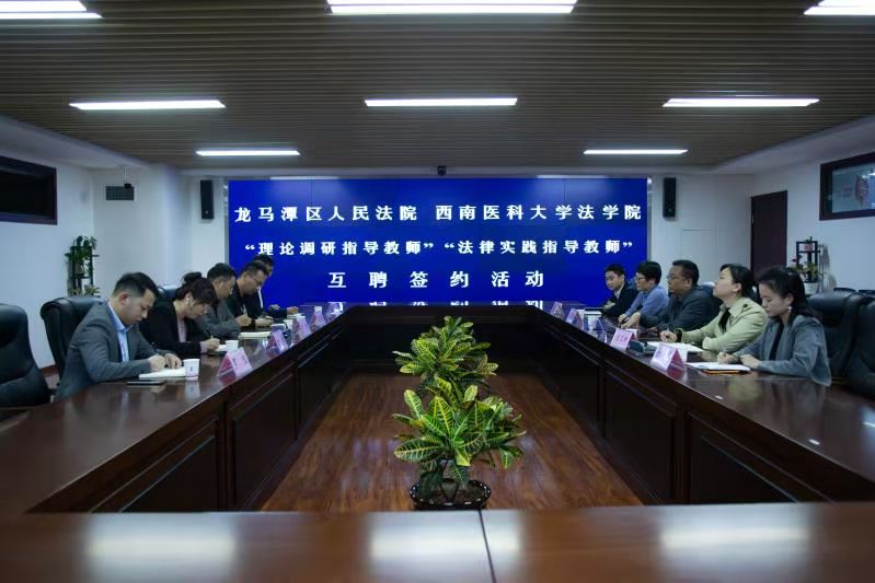 11月13日下午,beat365官网法学院与泸州市龙马潭区人民法院战略合作协议签约仪式在龙马潭区人民法院会议室举行。龙马潭区人民法院党组书记、院长彭胜昔、政治处主任唐尼娜、专职审判委员会委员王亚梅和beat365官网法学院院长罗刚、学生科科长周正颐、程序法教研室刘楠博士等出席了签约仪式。仪式由唐尼娜主持。