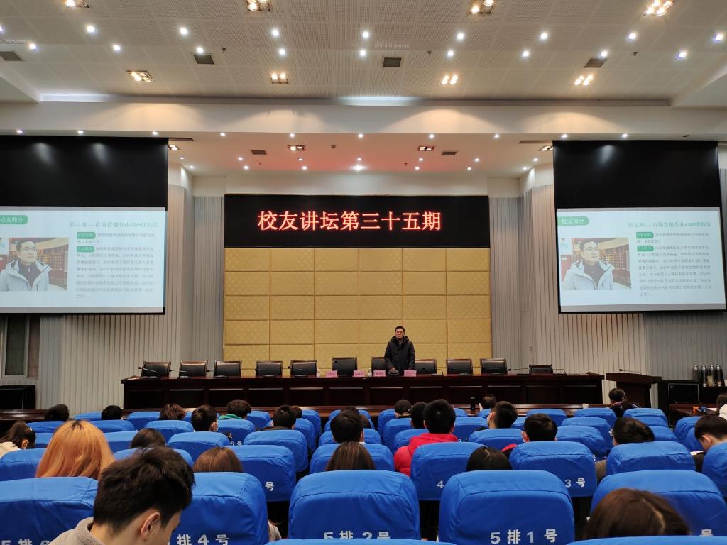 12月15日,beat365官方网站对外联络处、人文与管理学院在城北校区第二学术报告厅举行了第三十五期校友讲坛。人文与管理学院院长赵成文、党总支副书记马俊、2020级管理类专业和2017级市场营销专业学生共200余人参加了此次讲坛。讲坛由赵成文主持。