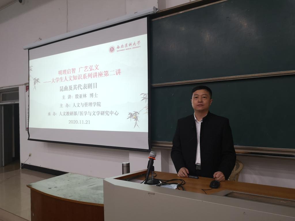 殷亚林作了《昆曲及其代表剧目》的学术讲座,他结合自己的研究领域,结合昆曲的发展历程给同学们奉上了一场集学术性、知识性和趣味性于一体的精彩讲座。韩光惠作了《中国传统文化的特质》的学术讲座,他重点讲解了古代中国重在内省的文化特质,呼吁广大学生从优秀传统文化中汲取思想营养,努力提高自身本领,积极投身到建设祖国的伟大事业中去。