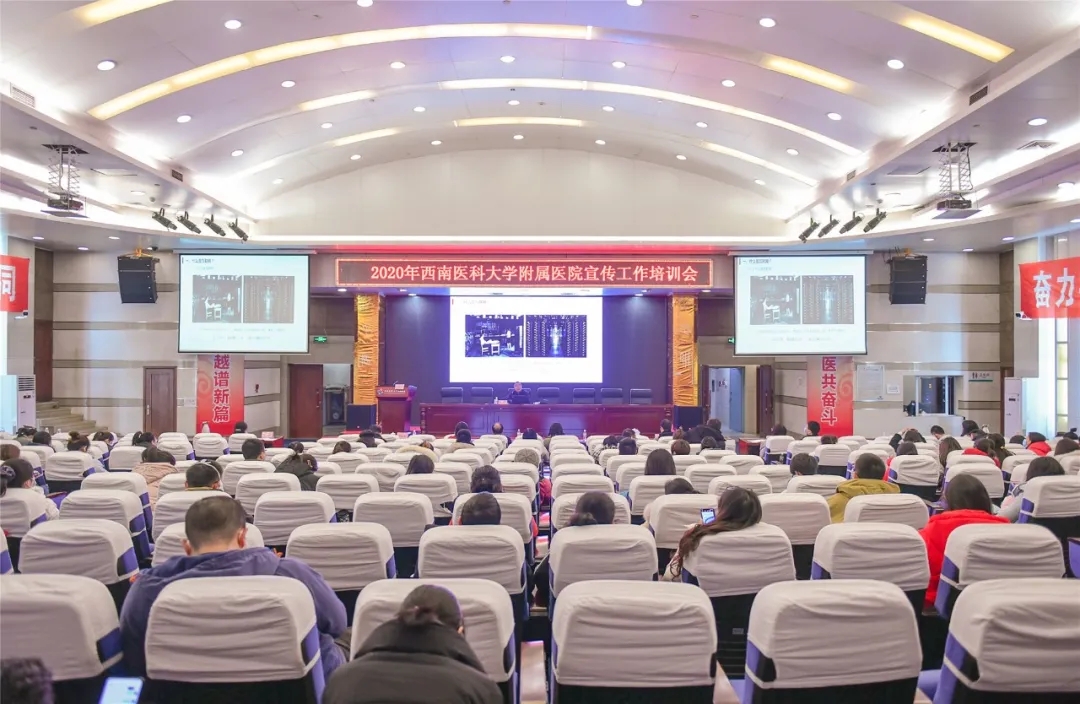 12月25日下午,临床医学院·附属医院在忠山院区学术报告厅举行2020年宣传工作培训会,特别邀请泸州日报社党组成员、副总编辑孔芒,泸州市广播电视台新媒体部编辑抖音板块负责人刘中伟等作新媒体产品编创、抖音拍摄制作及医院新官网后台操作的专业知识培训。