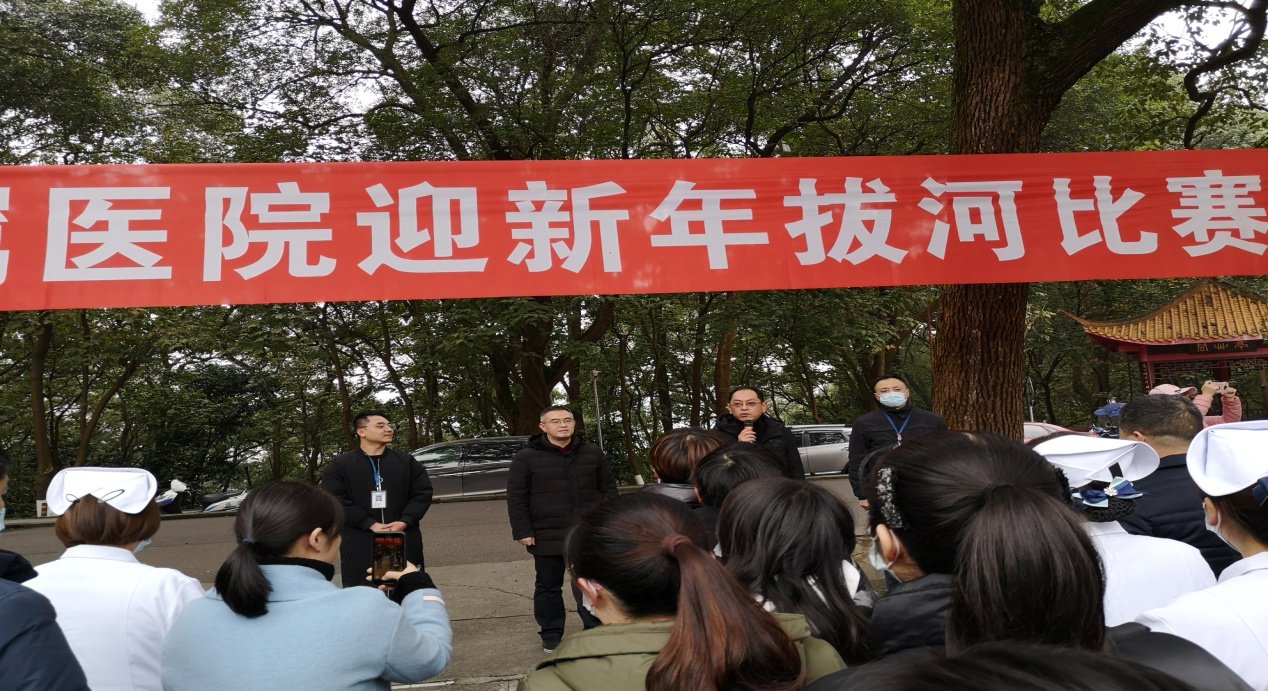 “一根绳一条心,拼尽全力,劲朝一处使,形成一股强大的力量,团结必胜”,2021年元旦节来临前夕,为丰富职工业余文化生活,增进团结协作精神,12月30日下午,附属医院工会组织十九个分工会团队在beat365官方网站忠山校区操场举行了“beat365官方网站附属医院迎新年拔河比赛”,比赛由医院党委副书记•工会主席黎靖主持。