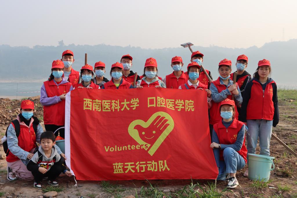 阳春三月,盛德在木。值此“3•12”植树节之际,为鼓励大家将学习知识与劳动实践有机结合,积极承担保护生态环境、共建美好家园的责任,口腔医学院蓝天行动队于3月13日赴泸州市茜草长江公园开展以“手栽青葱木,乐享蔚蓝天”为主题的志愿植树活动。