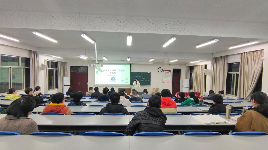 问学必有师,讲习必有友。11月25日,2018级临床办在忠山校区1阶教室举办学习经验分享活动。本次活动的主要目的是帮扶学习困难的同学找找学习思路与方法。活动由杨林负责主持,9名同学参与学习经验分享,3名学生代表和2名辅导员作评委,30余名同学现场听讲。