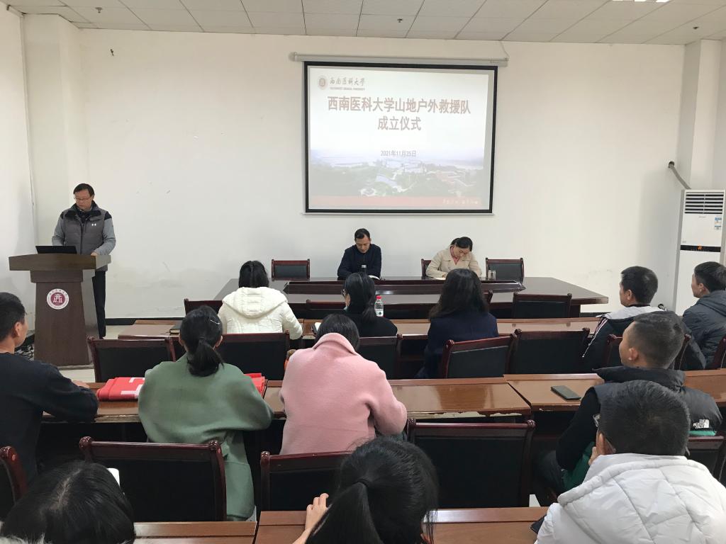 11月25日下午,经前期积极筹备组织,beat365官方网站山地户外救援队成立大会在体育学院会议室举行。体育学院院长王定宣、体育学院党总支书记邹小萍出席本次成立大会,同时到场的还有积极报名、自愿加入救援队的29名体育学院教师。