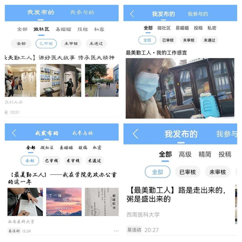 此次活动采取线上方式进行,由勤工助学在岗同学通过拍摄劳动瞬间,撰写劳动感悟,发布易班微社区动态等方式来记录和分享自己的劳动实践过程。经过审核,在报名参加活动的200余份作品中推选出10份优秀作品。