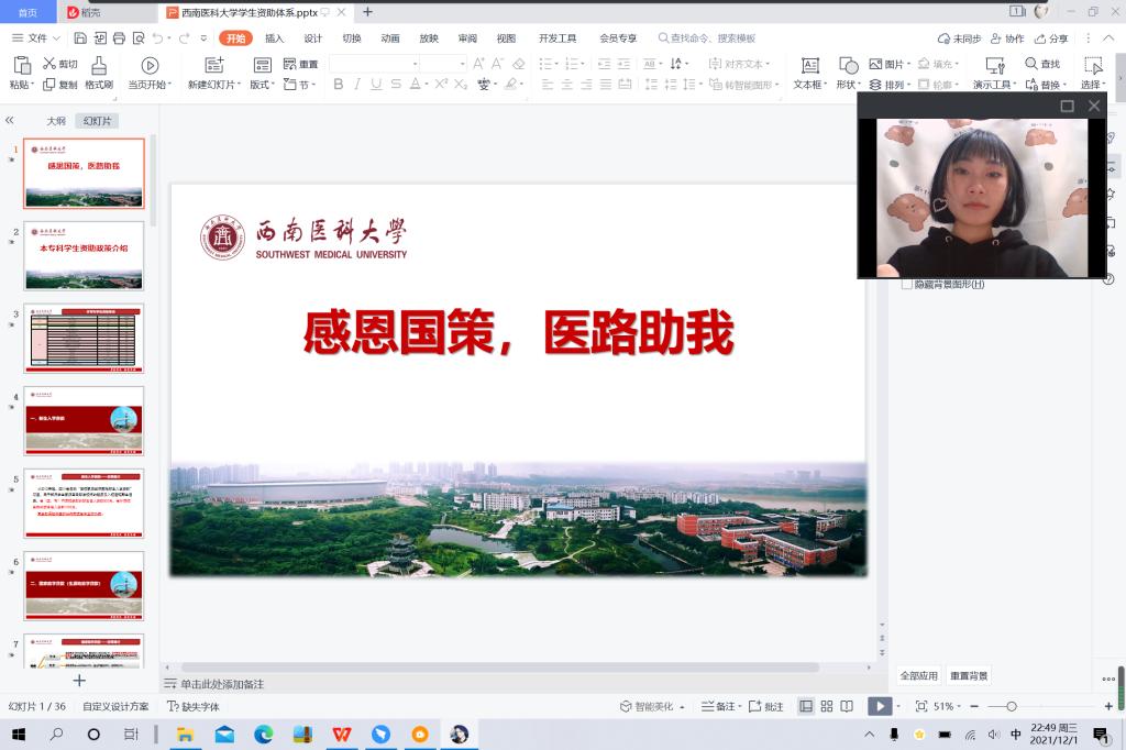 为坚持把“立德树人”根本任务贯穿资助工作始终,传递党和政府的温暖,康复医学系于11月25日通过线上形式开展“感恩国策,医路助我”资助育人活动,全体国家助学金受助同学参与。