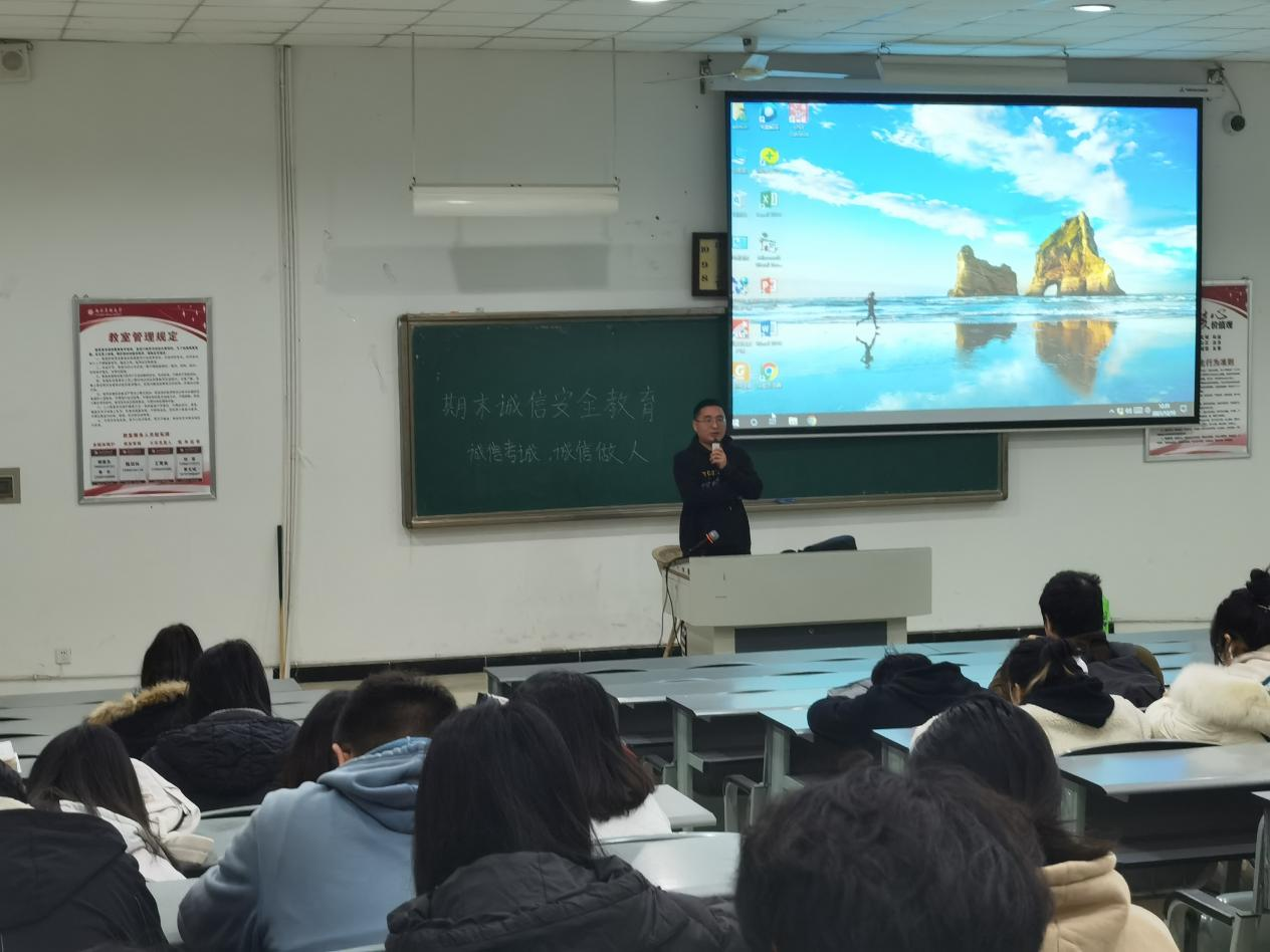会上,孙夫钦、仲菊芳分别向同学们强调了疫情防控特殊时期的学生个人防护工作,要求同学们严格遵守防疫防控纪律,安全出门,文明安全上网;准确判断诈骗信息,以防上当受骗;不使用违规电器,防火防盗;严格请销假制度。同学们要树立自己的目标,做好个人职业规划;最后要求同学们做好期末复习,迎接期末考试,力争取得好成绩。