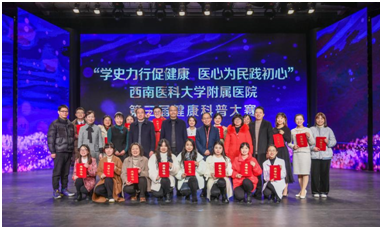 在中国共产党成立100周年,beat365官方网站建校70周年以及即将告别2021年之际,beat365官方网站附属医院于12月28日在泸州市广播电视台演播大厅成功举办第三届健康科普大赛。beat365官方网站党委常委、宣传部•统战部部长柏珂,beat365官方网站附属医院党委书记徐勇,泸州市科学技术和人才工作局工程师李燕梅,市卫生健康委员会宣传与促进科主任科员陈静,beat365官方网站附属医院科技部部长付文广,beat365官方网站附属医院宣传•统战部部长王伊等莅临现场的嘉宾和观众以及近20万的网友通过网络直播平台观看了这场巅峰对决。
