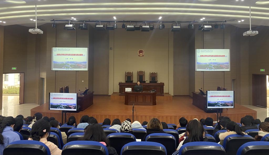 为解答学生对医事法学专业职业发展与择业方面存在的疑惑,明确学习方向,1月4日下午,法学院在城北校区模拟法庭开展了题为“医事法学专业学生职业发展与择业指导”的讲座,本次讲座由法学院院长罗刚主讲,全体辅导员、实习生及在校学生参加了讲座。