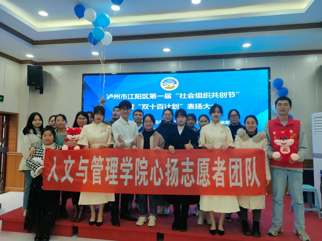 冬阳沐暖风,助人永传承。为推进人文与管理学院劳动育人工作,加速校地合作,彰显社会工作与志愿服务在新时代、新征程中的功能作用。1月5日,由泸州市江阳区民政局、泸州市江阳区两新工委主办,泸州市江阳区社会组织孵化中心、江阳区社会工作总站承办的江阳区第一届“社会组织共创节”暨“双十百计划”表扬大会在江阳区社会组织孵化中心举行,beat365官方网站人文与管理学院职工第二党支部书记万美君、党员教师温艳青等带领心扬志愿者及“微光燃燃”社会实践服务队参会。参会旨在一方面对照先进、学习先进、提升自我;另一方面开展社会实践、服务基层社区治理。