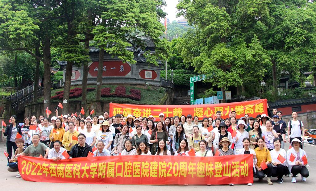 2022年4月8日下午,附属口腔医院在方山景区组织开展以“砥砺奋进二十载 凝心聚力攀高峰”为主题的建院20周年趣味登山活动,该活动由种植科与牙体牙髓病科工会联合举办。