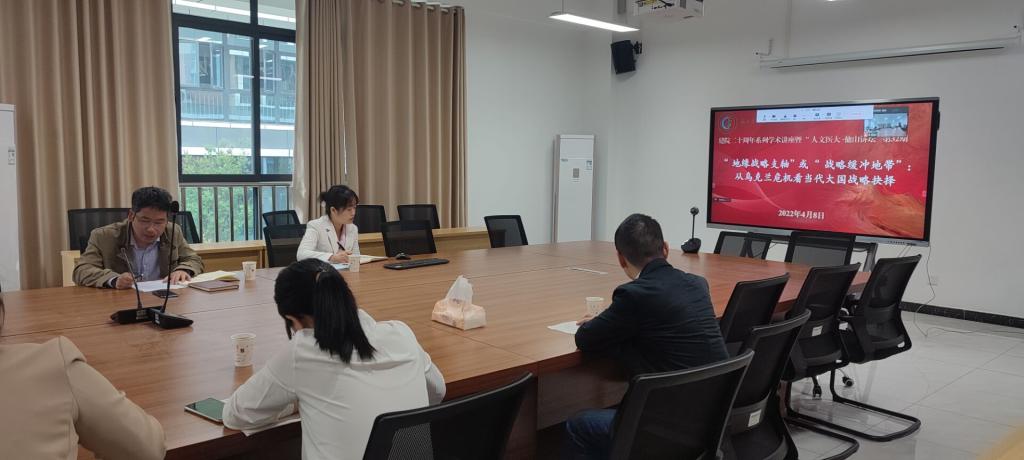 此次讲座是由吉林大学国际政治系主任、国家发展与安全研究院副院长兼东北亚安全研究中心主任、国家安全教育研究中心主任郭锐教授主讲,讲座题目为“地缘战略支轴”或“战略缓冲地带”:从乌克兰危机看当代大国战略抉择。郭锐主要从三个方面进行了讲述,一是从大国战略决策看俄乌冲突变局;二是俄乌冲突变局的可能走向;三是俄乌冲突变局对中国周边安全理论的影响。