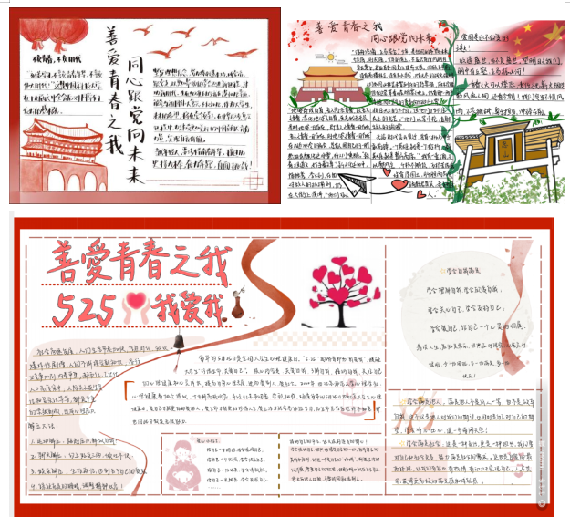 本次活动以“善爱青春之我,同心跟党向未来”为主题制作特色手抄报。同学们积极参与,绘制了各种新巧别致的手抄报,充分体现了当代大学生的艺术创造力和动手能力。在本次活动中,多幅精致的手抄报荣获优秀奖。同学们在此次活动中学会了如何关爱自我、善待自我、健康成才,以发自内心的爱与和谐来善待和关爱他人及社会,共创美丽校园、和谐社会,更加明白了“善爱我”才能“我爱我”,进而由爱自己发展到关爱他人,关爱社会。
