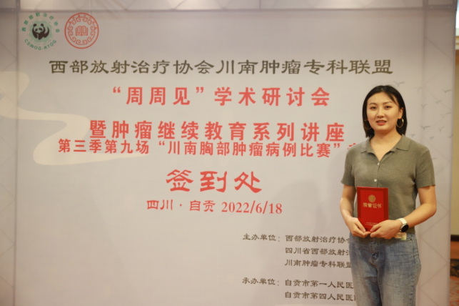 2022年6月18日,四川省西部放射治疗协会川南肿瘤专科联盟“周周见”学术研讨会暨肿瘤继续教育系列讲座第三季第九场“川南胸部肿瘤病例比赛”在自贡举行。beat365官方网站附属中医医院肿瘤•血液病科(忠山院区)研究生邓凤参赛并荣获川南胸部肿瘤病例比赛二等奖。