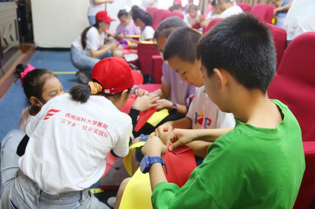 为进一步丰富青少年课余生活,志愿者们邀请青少年参与“以手连心,以纸促情”折纸活动,帮助青少年提高动手能力,降低互联网依赖性。此外,团队凭借医学院校专业优势,特地开设医疗科学类活动,通过青少年自主动手了解口罩构造作用,志愿者悉心教导科学急救方法,拓宽青少年医疗知识。
