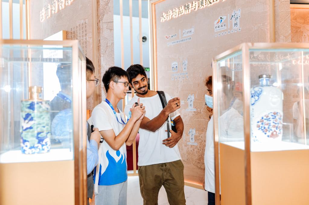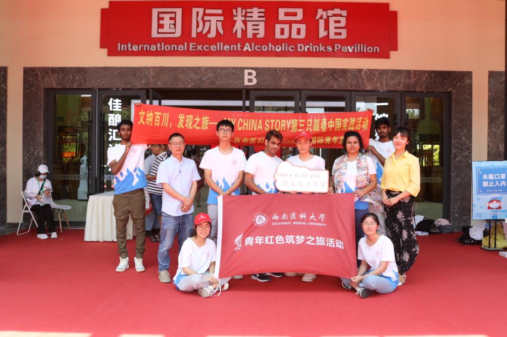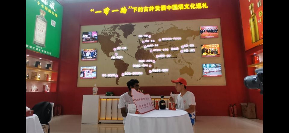 本期活动以“领略古诗词中的诗酒文化;探访酒博会中的国酒品牌”为主题,讲好中国白酒企业品牌的故事。share with you跨文化工作室在国际教育学院指导教师唐莉蓉的策划安排下,搭建起中外学生交流互鉴的平台。酒博会期间,国际教育学院4名留学生和麻醉学系、医学信息与工程学院4名翻译志愿者:吕海山&Shan;熊露&Bindu、陈婉静&Arenjay、朱和林& Sreejith以搭档的形式开展文化互动,以中国白酒文化知识科普与国际传播为切入点,以视频拍摄和现场直播的方式,用镜头记录下酒博会所见所闻,助力中国白酒文化在海内外年轻群体绽放新的活力。
