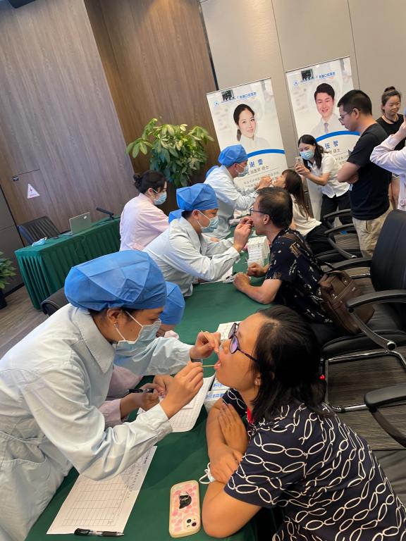 讲座结束后,义诊宣教小组医护团队为泸州老窖职工共200余人进行了详细的口腔健康检查。专家们认真细致的进行讲解,对发现的问题详细记录并提出相应建议,还发放了牙膏、牙线等口腔保健用品。