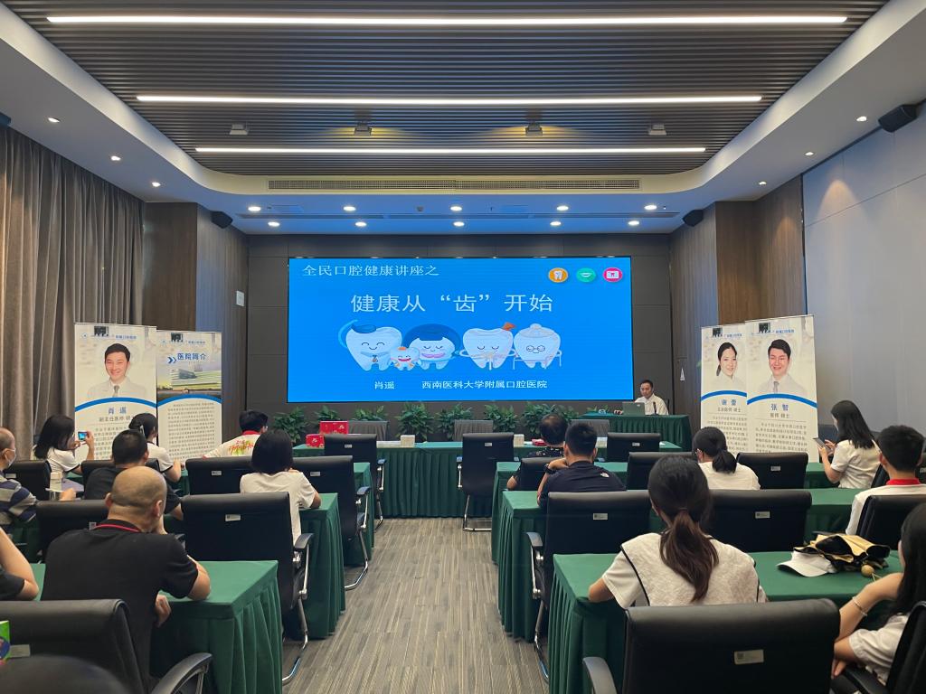 7月29日下午,泸州老窖携手beat365官方网站附属口腔医院举办的“关爱牙齿,呵护健康”义诊系列活动在泸州老窖营销大楼东楼1-3会议室举行。本次义诊系列活动分为三个部分:参观泸州老窖党群活动中心、口腔健康讲座、义诊。附属口腔医院临床第六党支部从城北门诊部派出10名医护团队、医院运营管理科、医务科相关工作人员10余人组成的义诊宣教小组参与此次义诊活动。