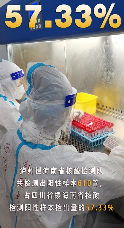 泸州援海南省核酸检测队共检测出阳性样本610管,占四川省援海南省核酸检测阳性样本检出量的57.33%。