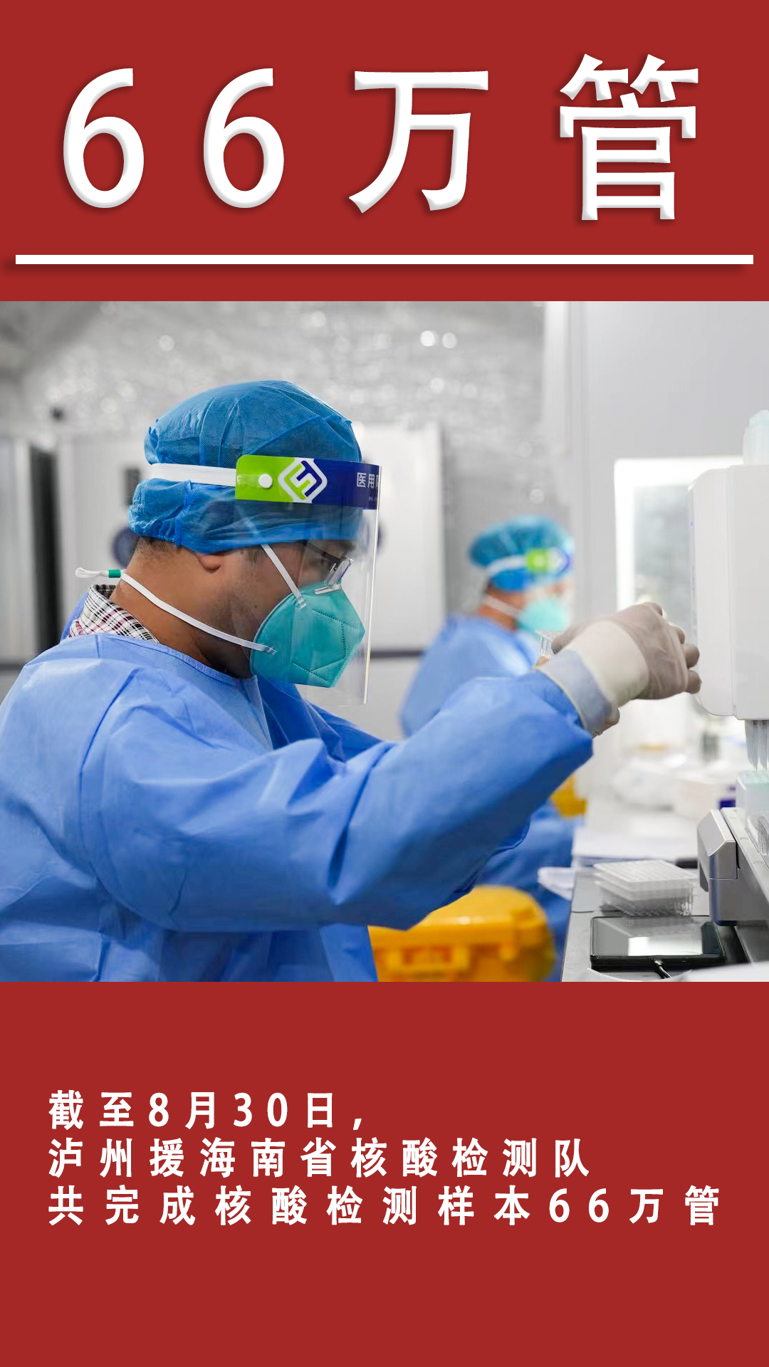 截至8月30日,泸州援海南省核酸检测队共完成核酸检测样本66万管。