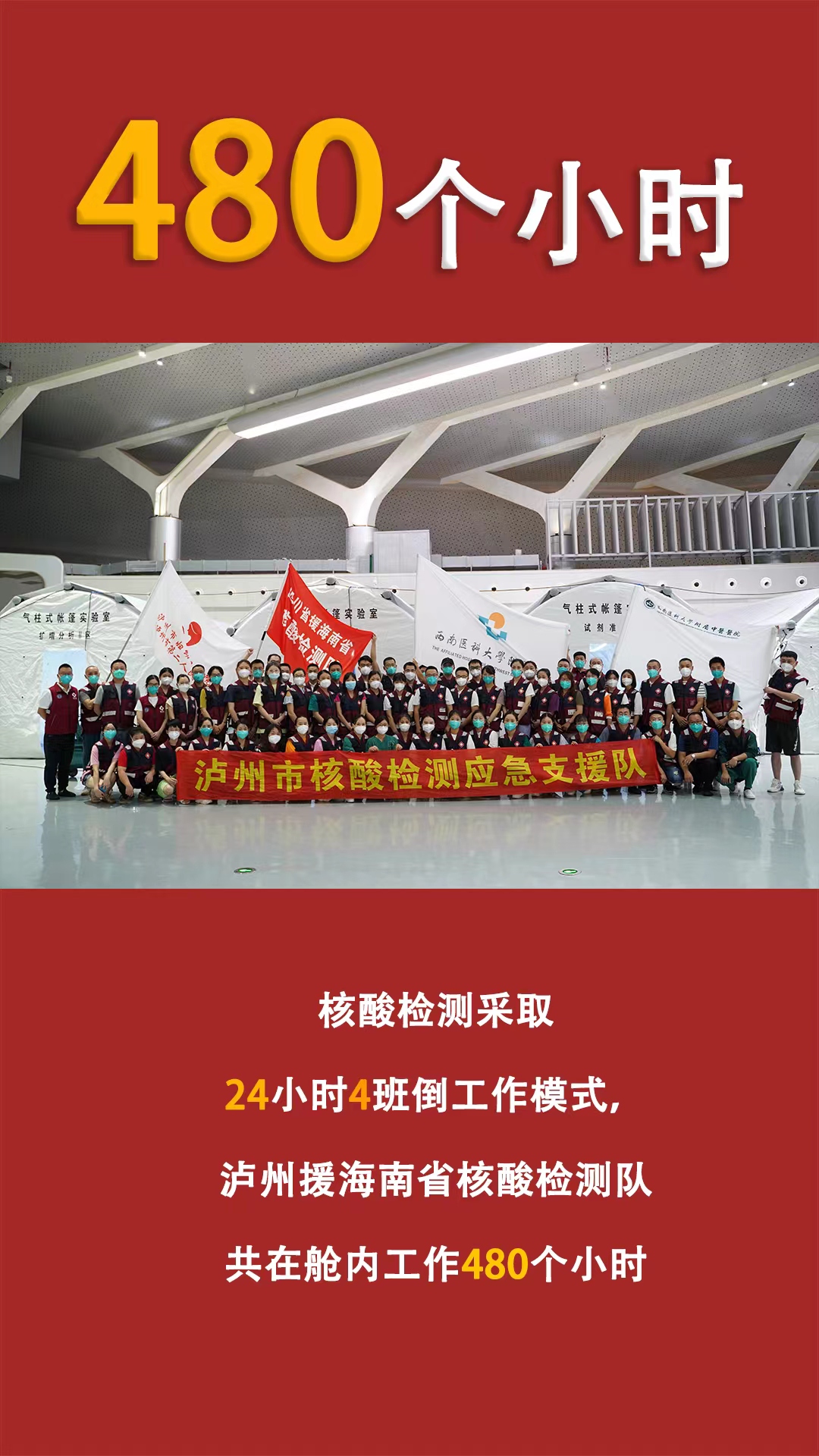 在海南儋州抗疫期间,泸州援海南省核酸检测队发扬伟大抗疫精神,敢于“逆行”、勇挑重任,在海南抗疫大考中交出了一份满意的“泸州答卷”