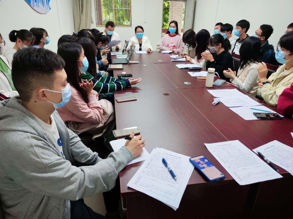 会议伊始,阳永连首先对获得奖学金的同学表示祝贺,同时传达了资助育人精神,鼓励同学们在逆境中不忘初心,奋勇前行;周智源对标逐一讲解填写要求,邝蓓蕾就申报注意事项作了详细说明与补充,认真回答了有关申报的疑问,最后她强调在此项工作中务必保持实事求是、严谨认真的态度,并现场修改了部分同学的申报内容。