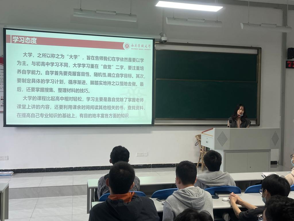 为了帮助大一新生找准自己大学生活的合理定位,助力大家学有所成,向榜样看齐,2022年10月13日,基础医学院基础医学办在学海楼403教室举办“医”路有约之优秀学姐经验分享会。本次分享会由基础医学专业2023届推免生陈洁主讲,基础医学专业2022级新生、2021级、2019级学生代表参会,会议由基础医学办副主任王旭利主持。