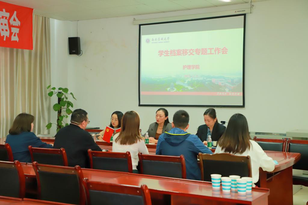 近日,学校档案馆馆长张晓燕带队深入护理学院,调研学生档案管理工作情况。护理学院党委副书记、纪委书记李文良、学生科科长陈晨及全体辅导员参加了会议