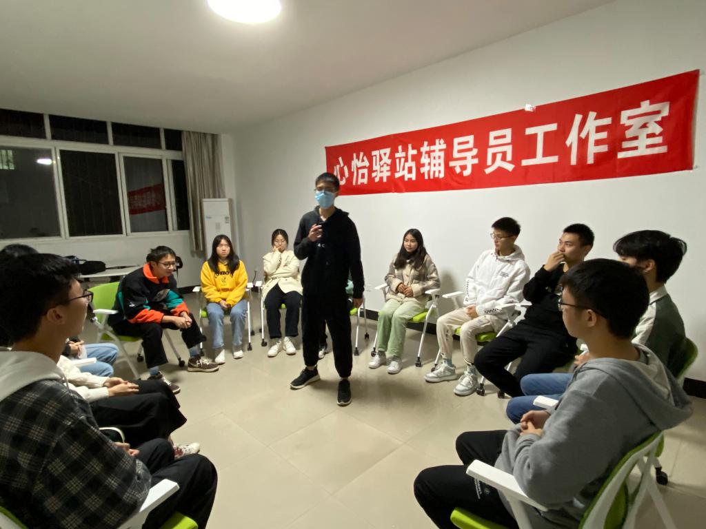 压力并不可怕,关键在于我们要如何去克服它或者与它共存。在活动中,李莎莎组织开展了一系列活动,帮助同学们感受压力,理解压力,进而克服压力。现场学生们根据指令,围成一圈,为前面的成员敲背、捶肩、捏肩膀;向前围成圈走动,以活跃气氛,放松身体。经过热身,团辅成员们身心舒展,更好地进入团辅状态。