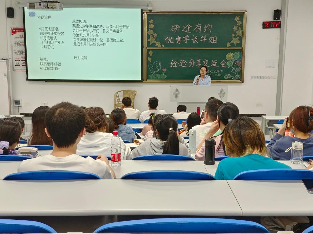 本次交流会增加了低年级同学们对于考研的了解和考研热情,帮助大家了解就业环境,明确当前的就业形势,有助于大家更加合理地规划学习生活和未来路径。