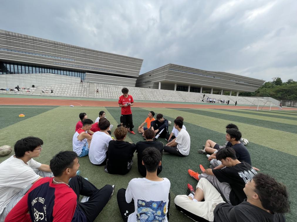 2022级体育学类5班在青年体育中心足球场,以共同探讨心理状态和与大家一起分享最近有趣的事情的方式,帮助同学们舒缓学习压力和工作压力,增强学生对情绪的体验和自知。