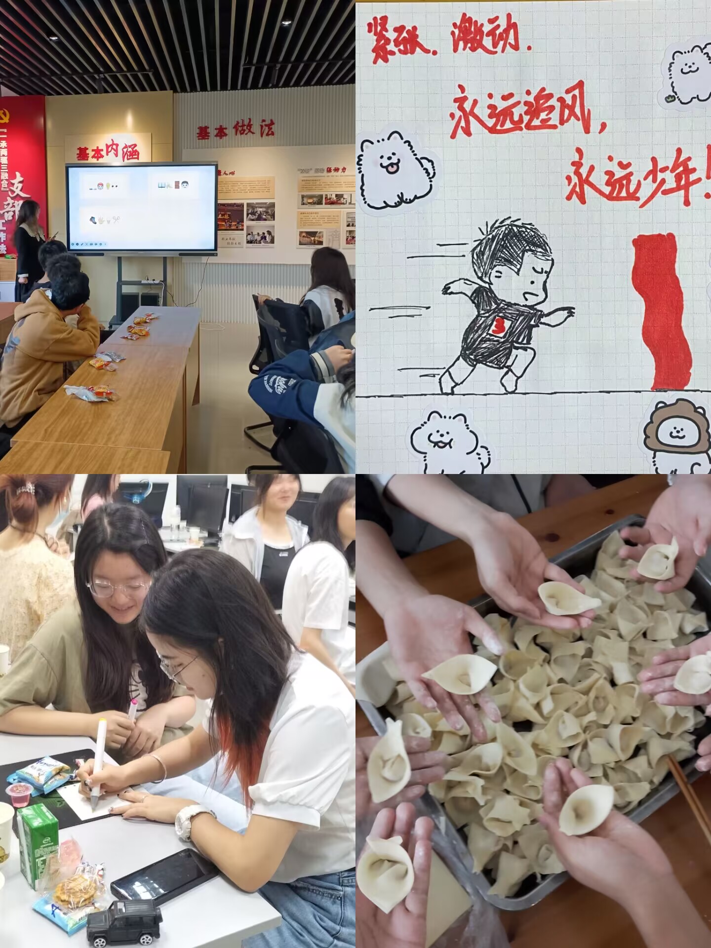 本次心理班会内容丰富、形式多样。有的班级采取分享情绪卡片、记录情绪手账的形式,引导大家觉察并调整情绪,拥有好心情;有的班级采取集体包饺子、树洞悄悄话的形式,搭建沟通交流平台,凝聚班级人心;有的采取游园游戏、户外行走的形式,活动身体的同时释放心灵的压力。