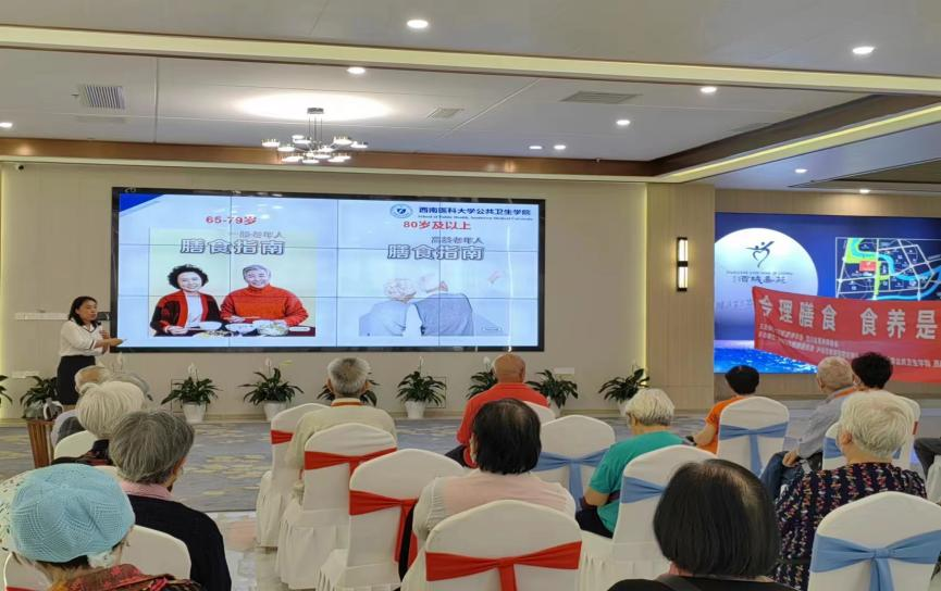 5月25日上午,beat365官方网站营养教研室的杨艳老师带领beat365官方网站营火虫协会走进泸州市酒城嘉苑养老社区,杨艳老师做了题为“膳食营养,护航夕阳”的老年人群营养健康讲座。