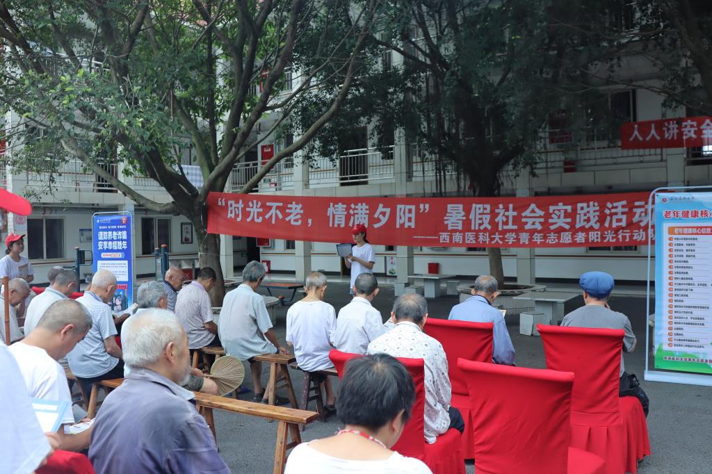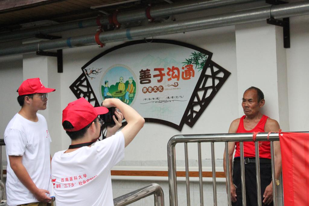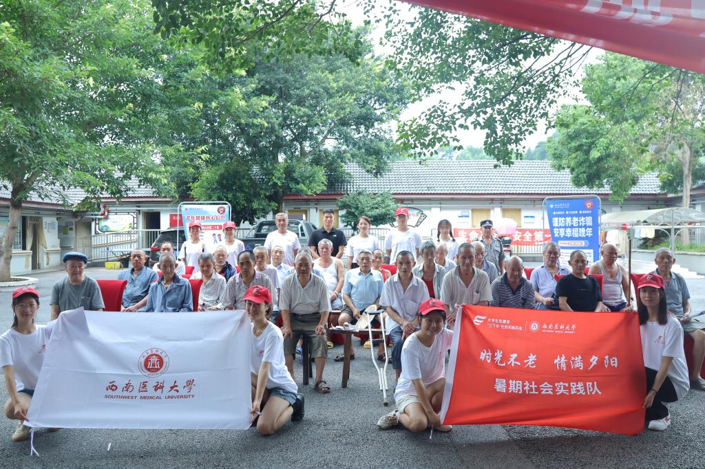 正值暑假,由宋曾等11名大学生组织的“时光不老、情暖夕阳”暑期社会实践队,走进泸州市方山镇,聚焦老年状况,开展社会实践活动,内容涵盖健康科普、防诈宣传和拍摄留影等方面,在实践中积极认识养老形势、掌握养老需求,融合专业知识,践行现代养老服务管理理念。