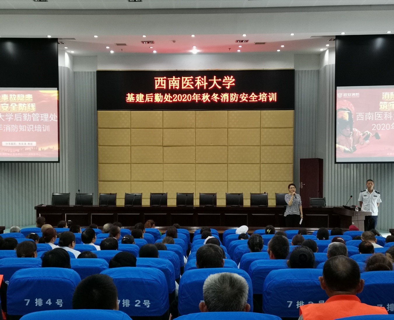 时值秋冬季节,天气干燥,为进一步提高职工消防安全意识,9月18日下午,基建后勤处在逸夫图书馆学术报告厅,协同成都政安消防知识宣传中心泸州分中心开展了2020年秋冬消防安全培训,基建后勤处食堂、公寓、物业约200余名管理人员参加了此次培训。