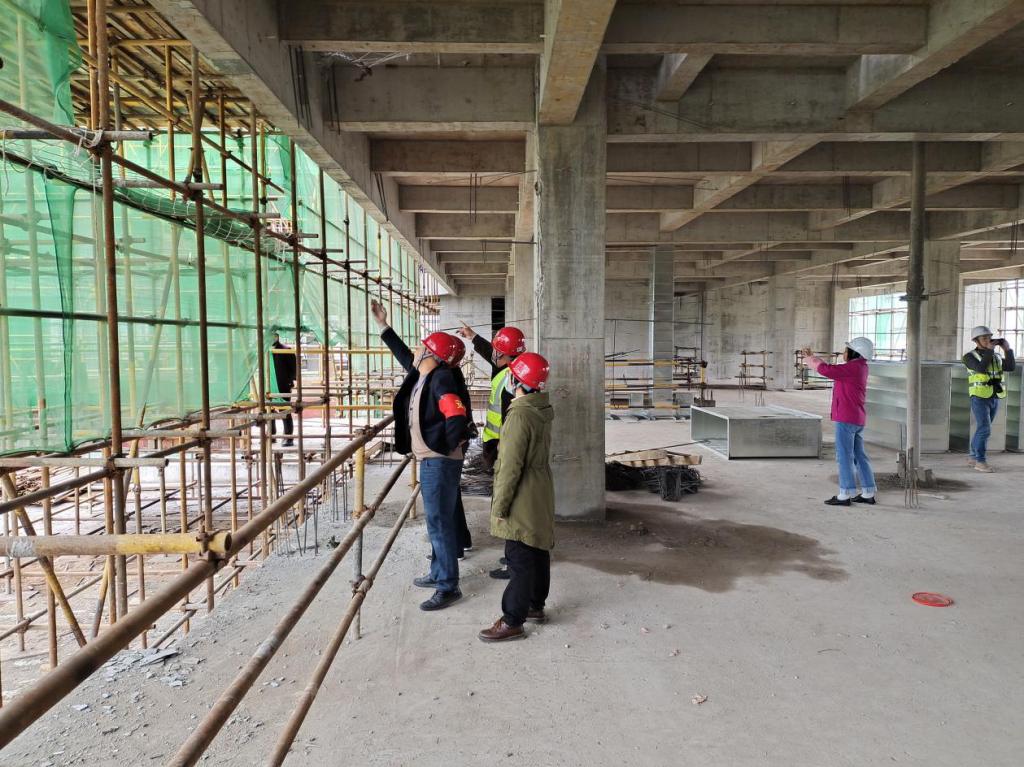检查组一行首先来到施工现场,全面了解工程项目概况及工期、前期手续办理情况、开工日期以及工程进展情况等。实地检查安全文明施工方案布置落实、消防安全、起重设备维护保养和安全管理以及扬尘防治情况,全面查看工程质量管理和质量控制。