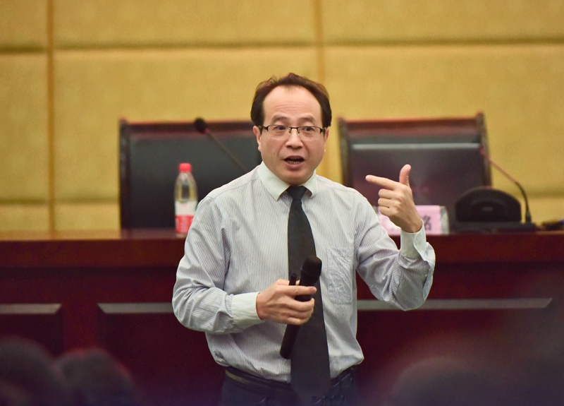 张碧国作总结讲话,他指出,刘铭教授的讲座深入浅出、一语中的,点明了当前医学生人文素养培育的迫切,给出了医学生学业规划建议。