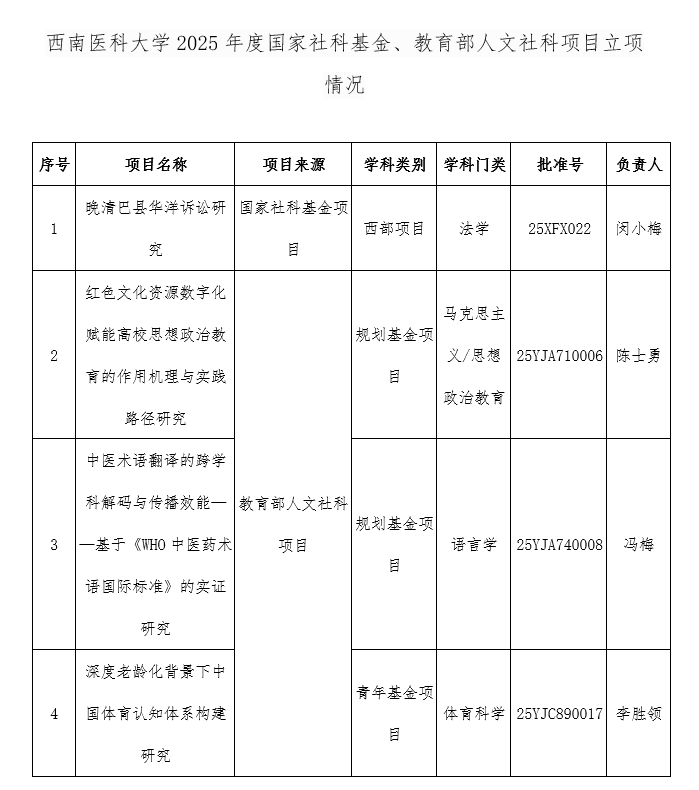 近日,全国哲学社会科学办公室、教育部社科司相继发布2025年国家社会科学基金年度项目和2025年度教育部人文社会科学研究一般项目立项通知,beat365官网今年喜获1项国家社科基金年度项目和3项教育部人文社会科学研究项目立项资助。其中国家社科基金西部项目1项;教育部规划基金项目2项,青年基金项目1项。